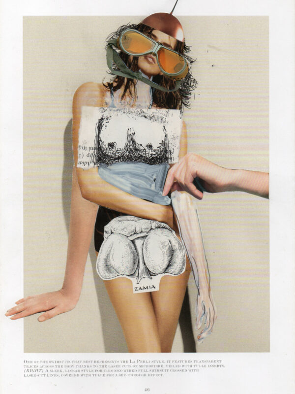 Serie Le cahier.- Comentario provocador sobre la representación del cuerpo femenino, la sexualidad y la cultura de consumo. Utilización del absurdo y el simbolismo para subvertir las expectativas del espectador, en referencia a movimientos como el dadaísmo y el surrealismo, un desafío visual que juega con la percepción, la identidad y el valor.
